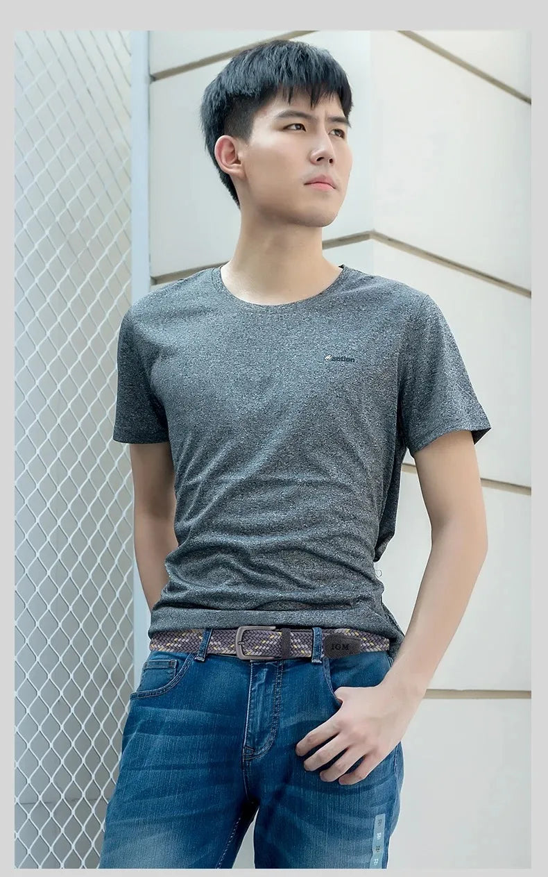 Ceinture en toile tissée pour hommes, tout élastique, extensible, pour garçons, jeunes pantalons polyvalents, Jeans, ceinture à la mode boutonnée