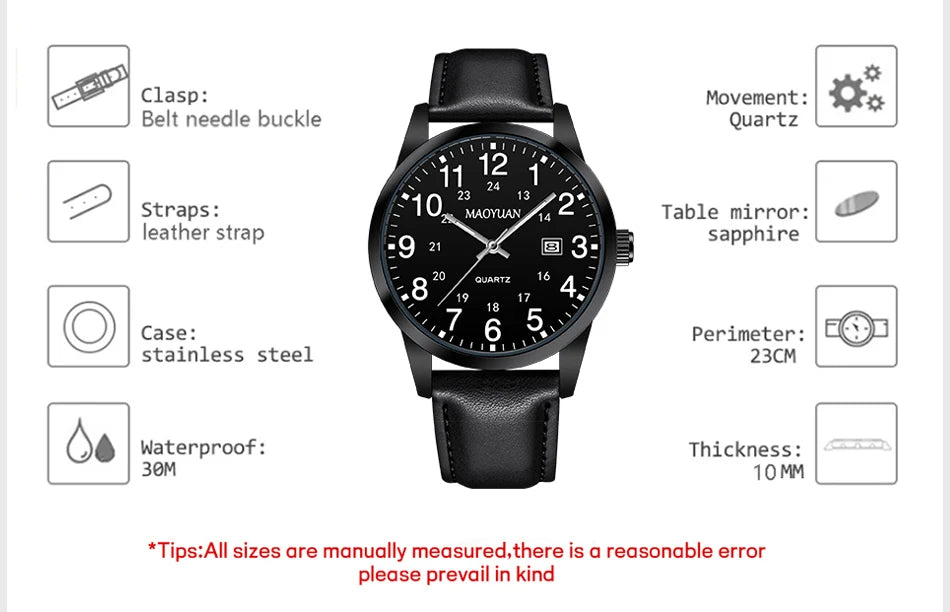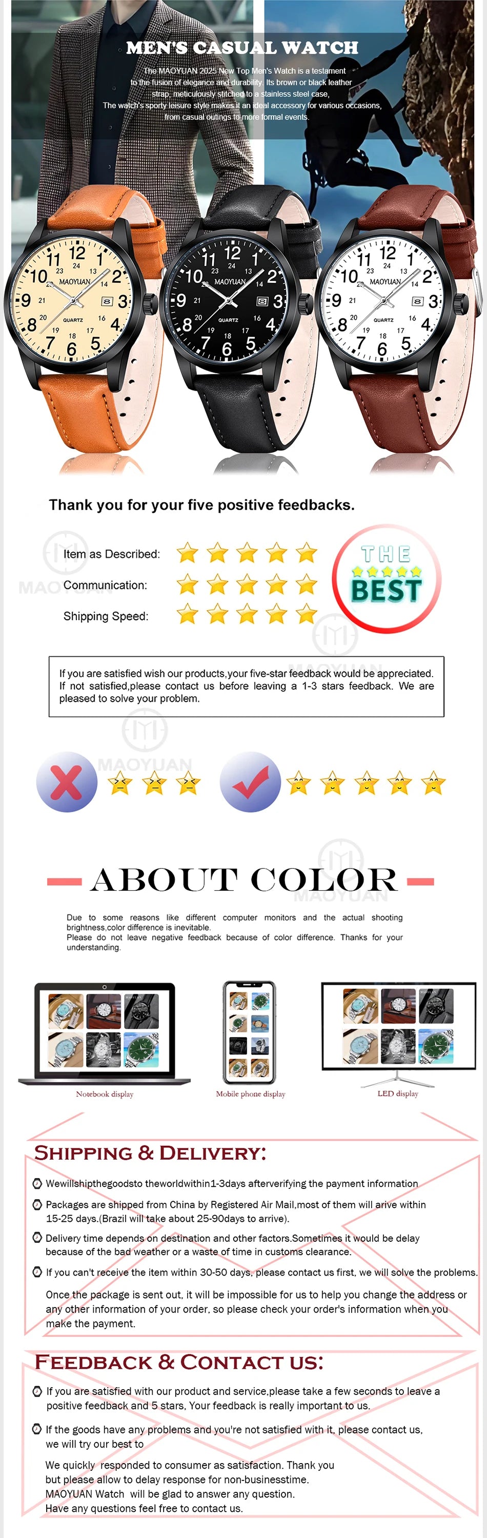 MAOYUAN 2025 nouveau haut montre pour hommes calendrier sport loisirs mode Style marron noir cuir étanche montre à Quartz
