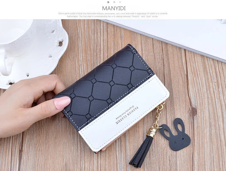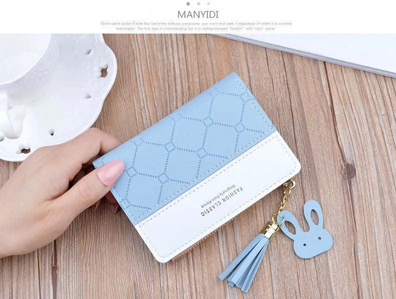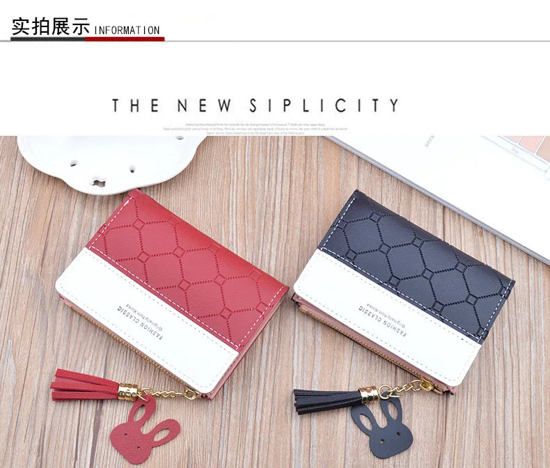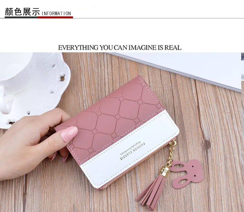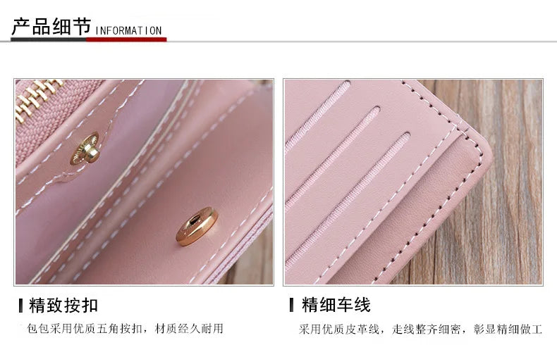 Portefeuille court patchwork pour femme, petit sac à main à fermeture éclair, portefeuilles à carreaux en relief, joli porte-cartes simple, mini sac d'argent rose