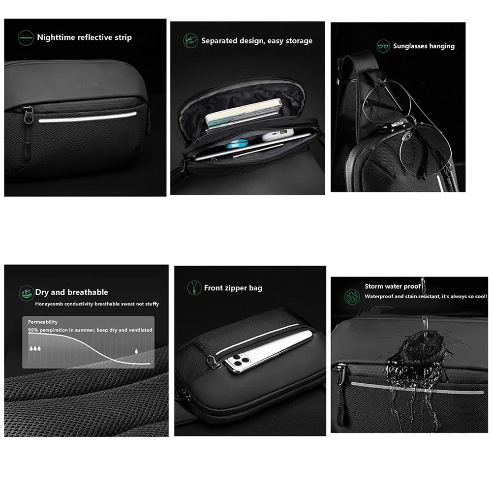Sac à Bandoulière Multifonction Extensible et Étanche pour Homme, Sacoche de Poitrine, Voyage